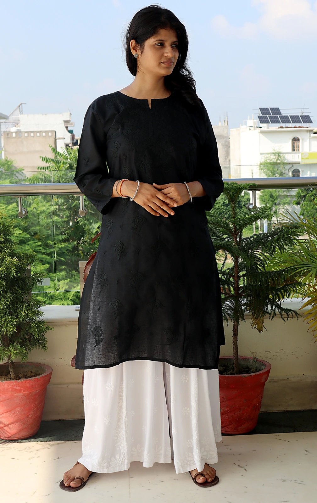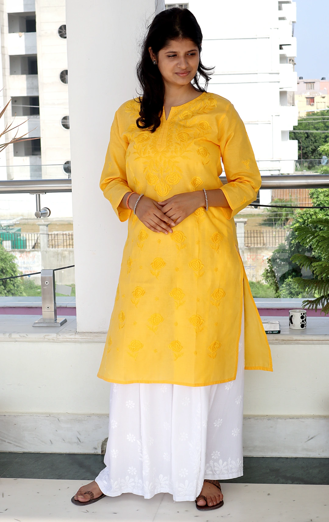 Srimanglam represents Kalakari straight Kurti in pure cotton fabric with delicate same thread embroidery. Your skin will surely fall in love with soft cotton fabric that will keep you Comfortable all day long and make yourself happier. Long slit alongside makes it more graceful and fashionable and gives you the option to pair it with your favorite denim or pants.