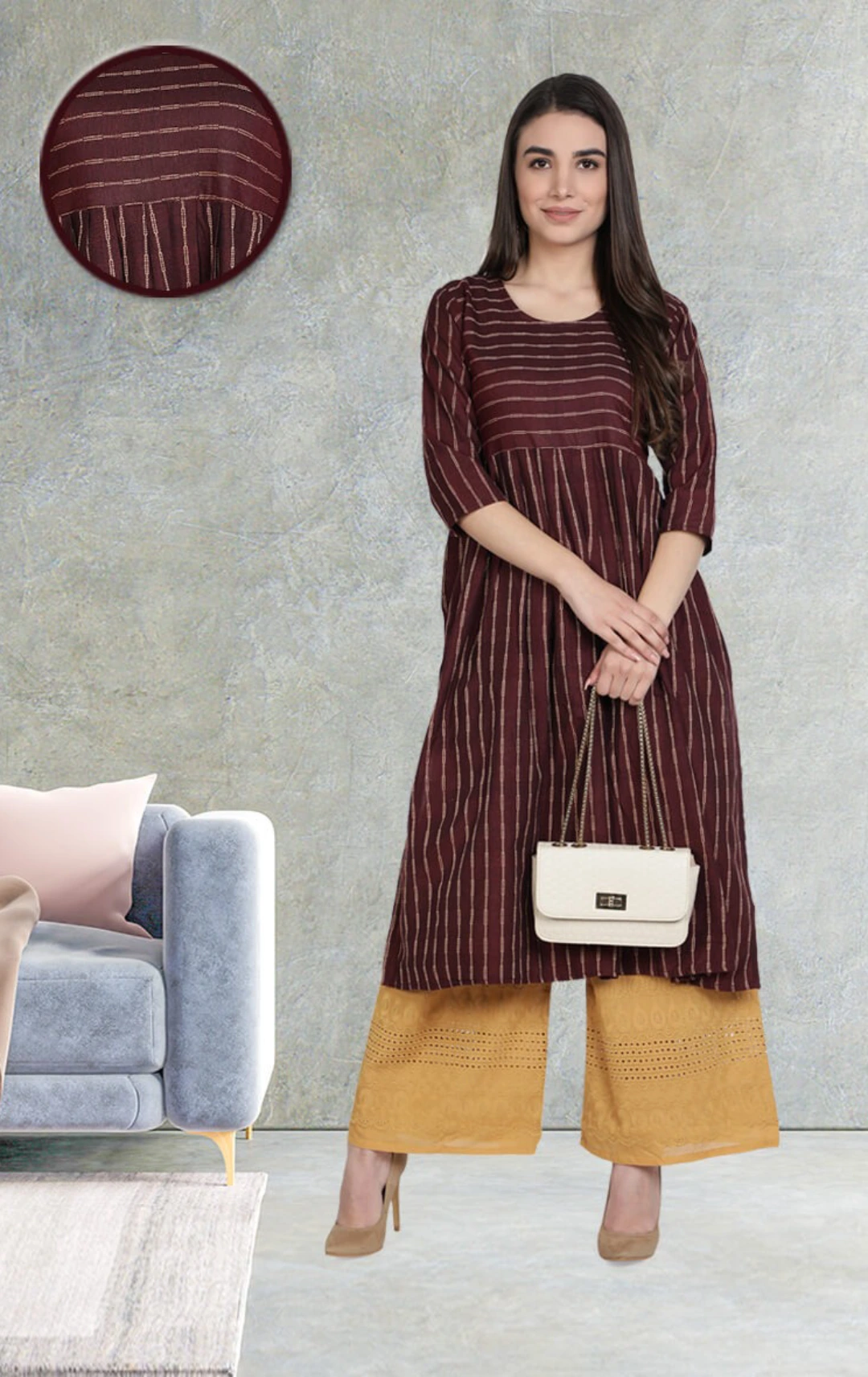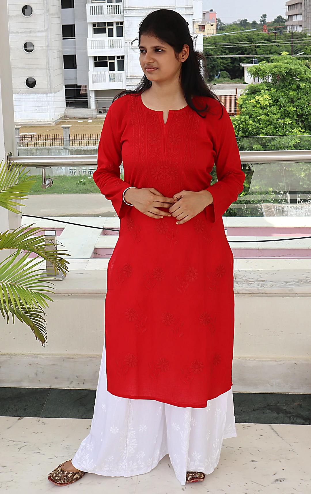 Ethnic Motifs Printed Anarkali Kurta Set Red Cotton
